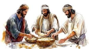 Two men are sharing a meal. The first man had five loaves of bread, and the second had three. They invite Ali (a mathematician), who had no bread, to share their meal. Together, they eat all 8 loaves, sharing equally. Ali gave the men eight coins as a thank you. The first man said that he would take five of the coins and give his partner three, but the second man refused and asked for the half of the sum (i.e. four coins) as an equal division. The first one refused. They ask Ali for a fair solution. What did he tell them to do? The solution can be found here.
